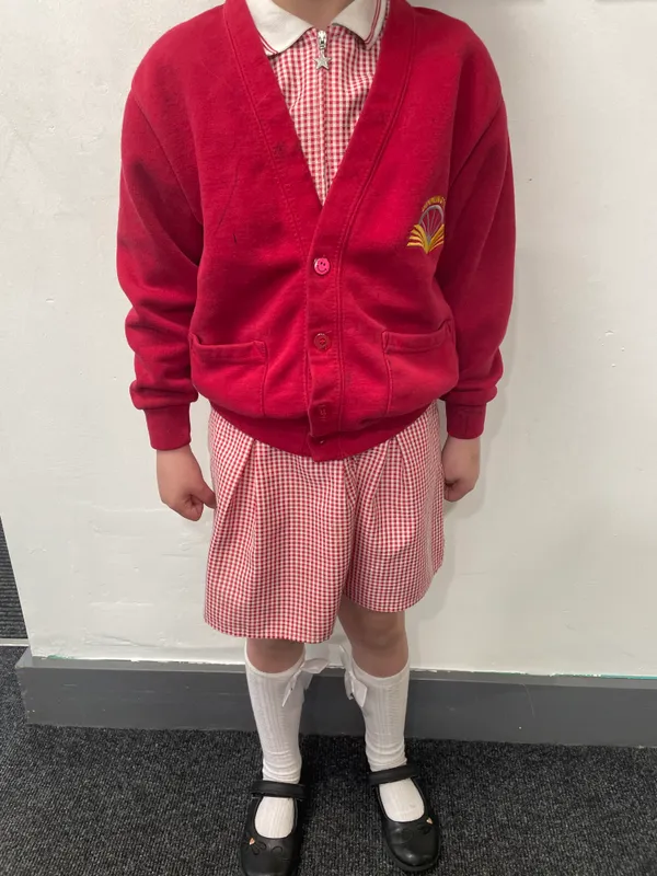 - Grey or Black school trousers or shorts, skirt, pinafore dress.