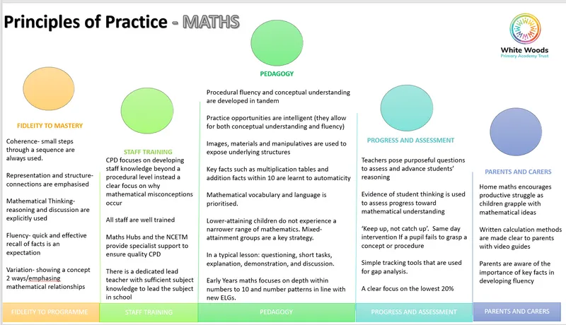 Within each subject area we also identify 'Principles of Practice'. This enables us to ensure our approach in each subject area is consistent.