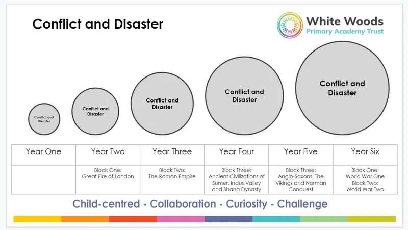 We have worked hard to establish our key concepts in each subject area. This has taken time and a lot of reading as well as making use of knowledge bases such as the historical association and leading thinkers in their respective subjects. We like to think of a key concept as 'growing' through carefully chose units of work in each year group. Thinking in this way helps us establish the mots important knowledge we ensure each pupil acquires through a specific unit of work. This diagram shows an example of a key concept in our history curriculum: